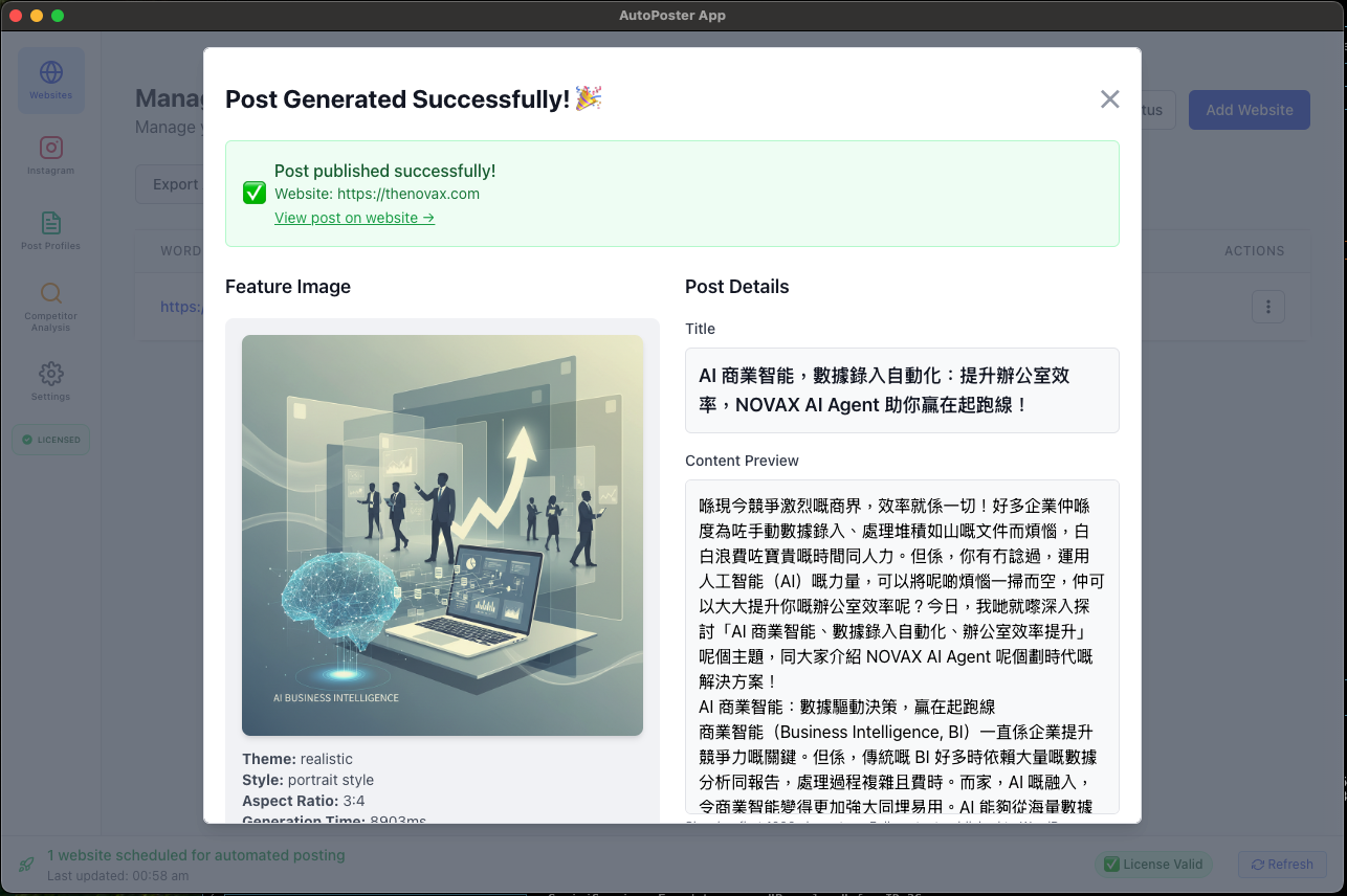 With AutoPoster Desktop, you’re building a sustainable, long-term strategy for growth across WordPress and Instagram. Unlock the full potential of your online presence and watch your business thrive! For more details or to purchase your lifetime license, visit https://thenovax.com/autoposter-desktop/.