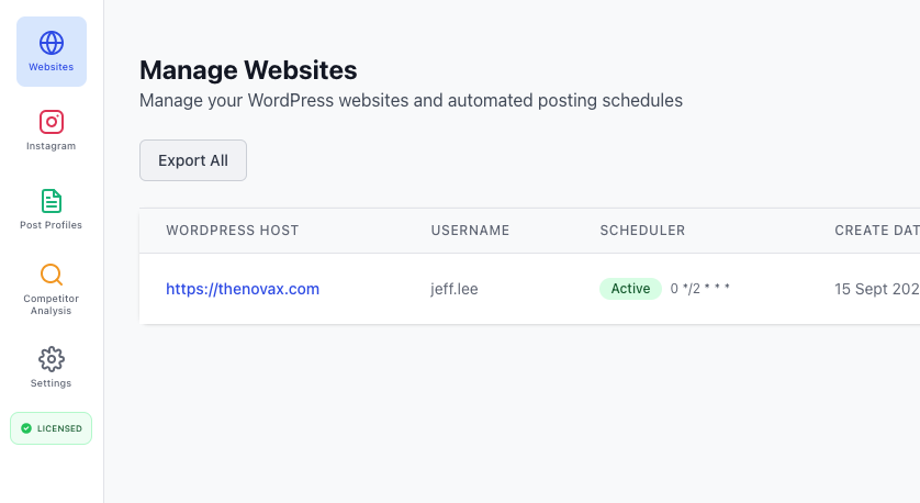 Set up the scheduler or manually trigger posts, and let the application automatically generate and publish SEO-optimized articles to your WordPress site and engaging posts to your Instagram account.